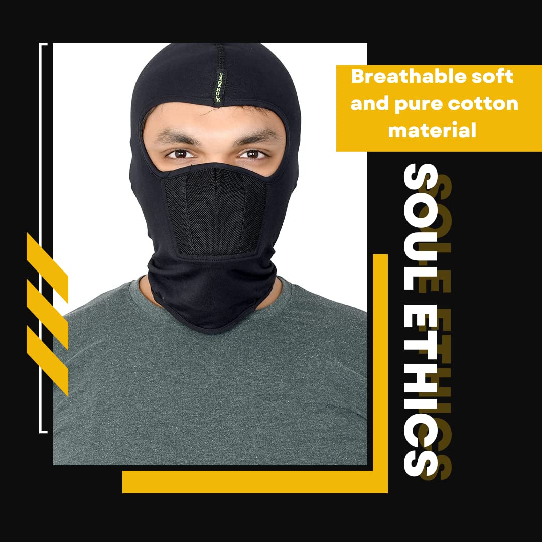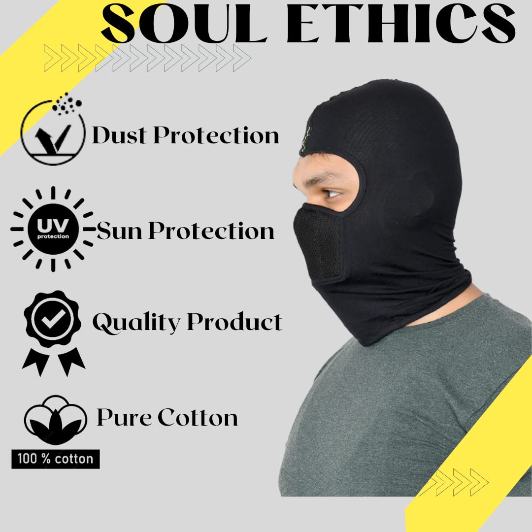 SOUL eTHICS Premium Cotton Breathable,Stretchable Full Face Cover Mask for Summer, Dust, Sun Protection, Bike Riding, Helmet Cap and All Other Outdoor Activity (Black) (Summer Full Premium Mask)